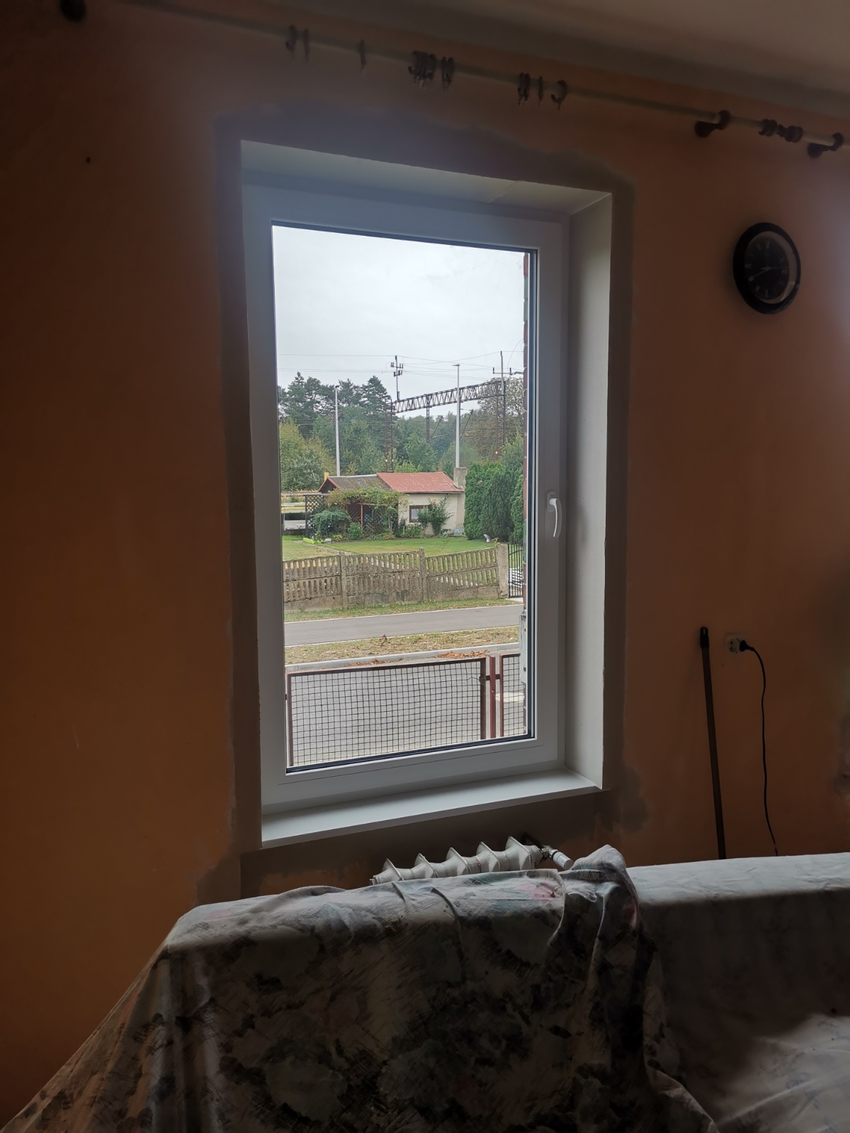 W starej poniemieckiej kamienicy wykonaliśmy demontaż okien, montaż nowych energooszczędnych okien PCV oraz obróbkę ściany wokół okna płytą GK.